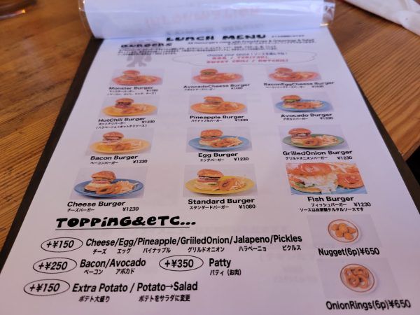 人気のハンバーガーの種類もたくさんあって、チーズバーガーかアボカドのバーガーが迷ったのですが、初めてなので、スタンダードのハンバーガーにします。