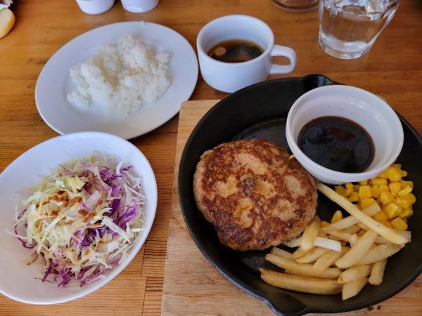 和風ハンバーグ(180g) 980円 ハンバーガーのパティがおいしかったので、ハンバーグも食べたくなったのでやってきました!いろんなことが気になるるなるなです(笑)。ポテト・サラダ・ライス・スープ付きです。ハンバーグの量は、180g 980円、240g 1200円、180gが2枚で1600円です。