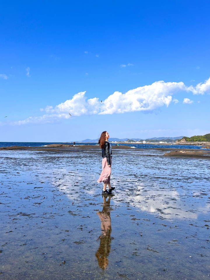 天神崎で綺麗に水面が反射するのは引き潮の時。風が吹いていたり波にうねりがあるとウユニ塩湖ぽくはならないのでご注意を。