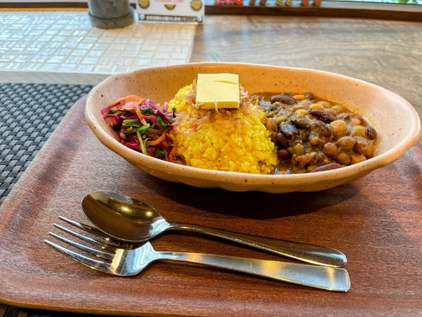 A.発酵ムクナと7種類の豆カレー(ビーガン)580円 熊本産のムクナ(八升豆)や北海道産フクユタカなど、全部で8種類の豆が80g以上入ったスパイスカレー
