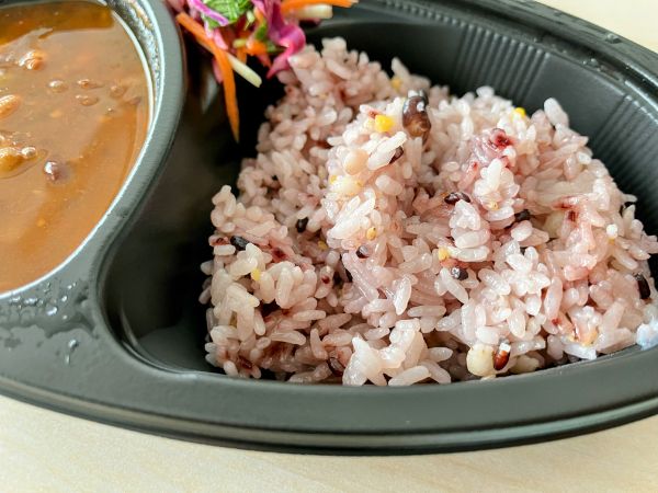 ④16穀古代米入りライス(ビーガン) 16種類の雑穀と黒米が入ったパワーライス。こちらもビーガンに対応してます。