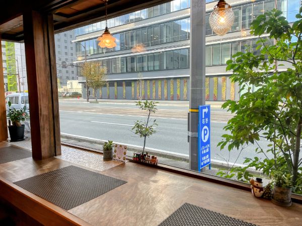 カウンター席からは、道行く車や電車を眺めれます。 こういう席があると、一人でも行きやすいですよね。
