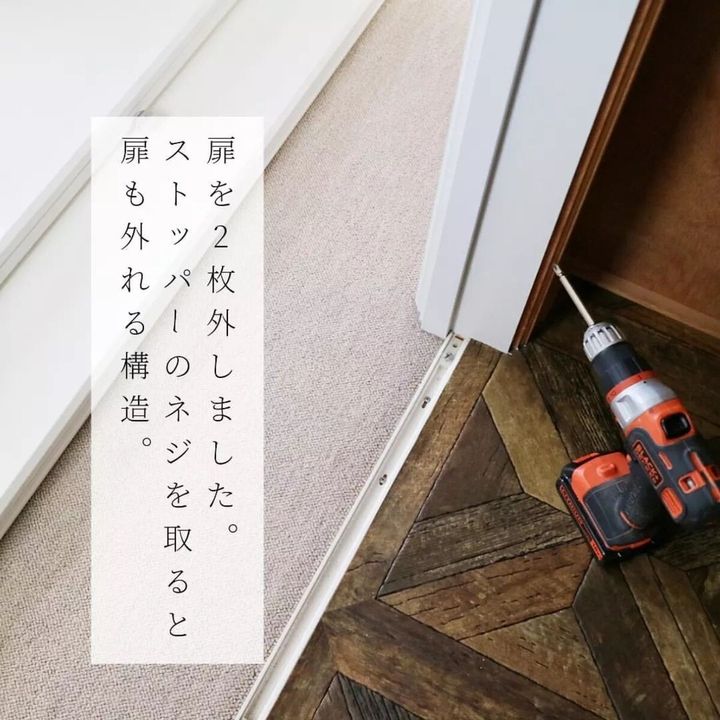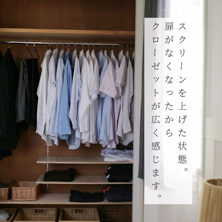わが家では扉を開けていることが多いクローゼット。扉が場所を取るので、思い切って扉をなくすことにしました。オープンクローゼットも良いのですが、適度に目隠しできるように、ロールスクリーンに変えました。今回は、扉を外すところからスクリーンの設置までを解説しました。インスタグラムでDIYに関する情報を発信しているfumi(fumifumi_3)がロールスクリーンの取り付け方法をご紹介します。
