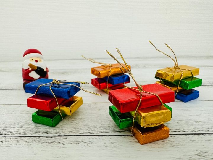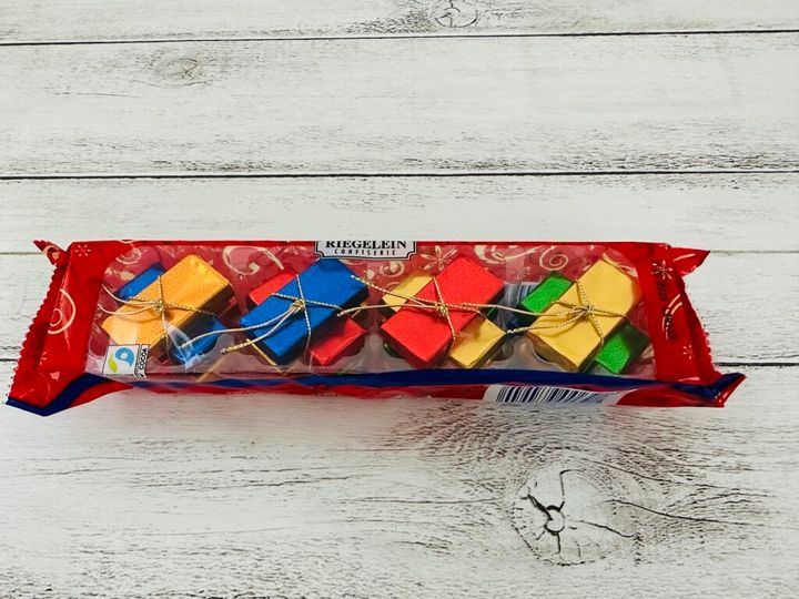 クリスマスプレゼントの包みをかたどったチョコレートです。ちなみに「ナポリタンチョコレート」とは一般的に、ひとくちサイズの包装されたチョコレートを指すそうですよ。