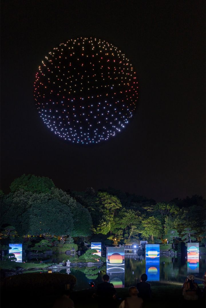 約50台のモノリス型「SUN」を海と浜の境界線である汀公園で展示した「SUN Beach」、電子音楽家 Takakahn の手がけた音響作品と巨大な茶室が景観と融合した「SUN Garden」、さらに500台のドローンを用いて夜空を彩った「Floating SUN」など、街全体を大きな驚きで包み込んだ。