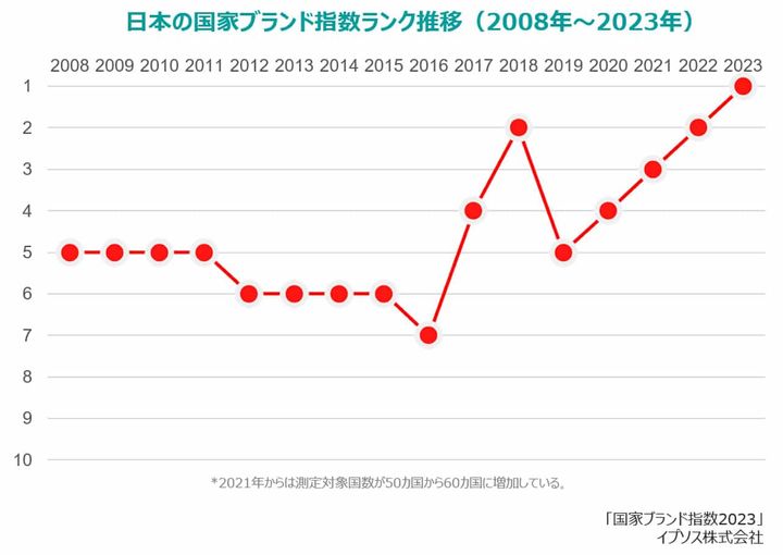 世界60カ国中日本が国家ブランドランキング1位に初選出|Ipsos