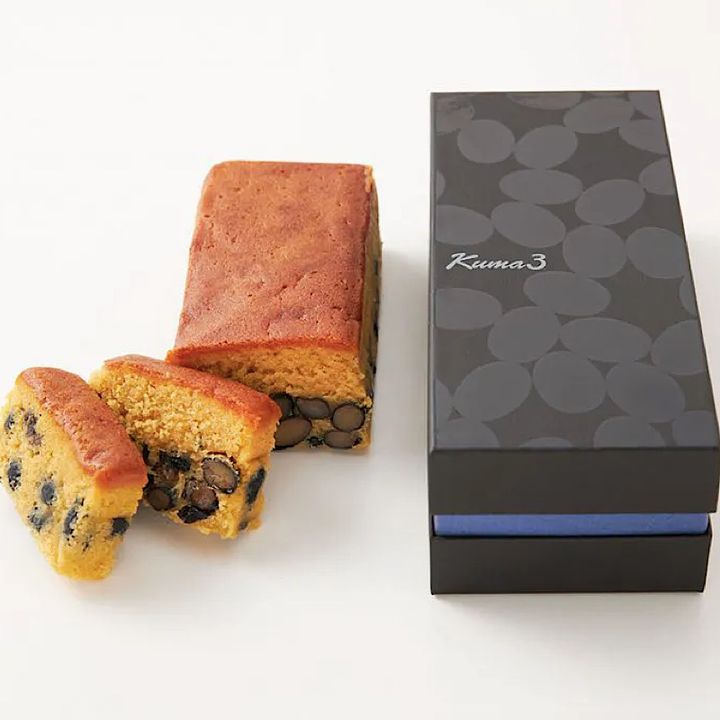 「ゴロゴロとした大粒の『丹波黒豆』をこれでもか!とふんだんに練り込んだ極上の1品。1本1本低温でじっくり焼き上げられているため、大量生産はできず、1日20本限定で販売されています。最高級のフランス産発酵バターが効いたしっとり濃厚な味わいで、ワインやシャンパンとの相性も抜群!黒を基調とした重厚感のあるパッケージはギフトに最適です」(桶谷さん)