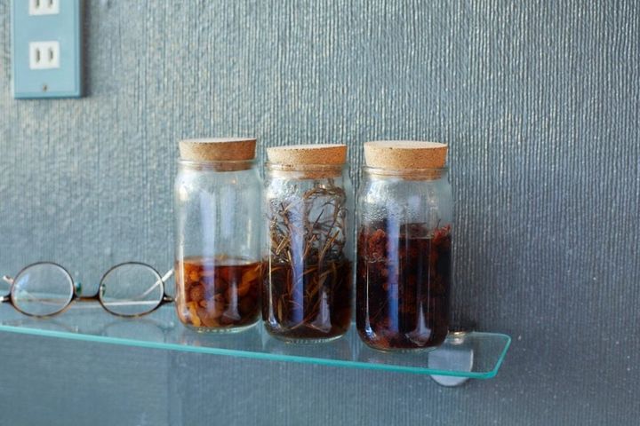 「身近な草花をウォッカにつけて精製水でわり、チンキを作っています。化粧水がわりに使ったり、髪につけたりしています」