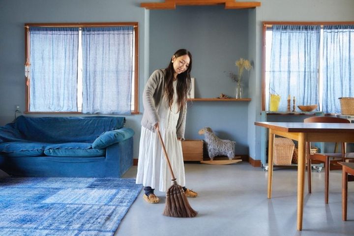 掃除には、棕櫚(しゅろ)のほうきを使っているという中村さん。ほうきはプラスチックごみになる消耗品が出ないばかりか、充電したり、コードを引きずって掃除をする煩わしさもなく、手軽でお手入れも簡単! しなやかな棕櫚から作られたほうきなら、ホコリが舞い上がりにくく、掃き心地もふわっとやわらか。床面を傷つけることなく、細かいゴミまでよくとれて、お部屋の隅々まで掃除することができます。