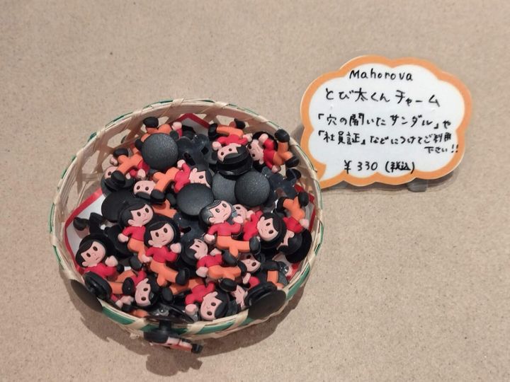 “飛び出し注意”を啓発する男の子が、こんなに小さな「とび太くんチャーム」330円(税込)に大変身! 全長は約3㎝。