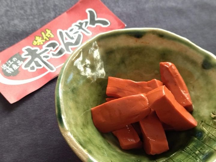 インパクト絶大のこんにゃくですが、風味もピカイチ! 醤油だしが優しく香り、一般的なこんにゃくに比べて弾力があり、プリプリッとした食感はおつまみにもなりそう。赤色だから辛いというわけではないのでご安心を。