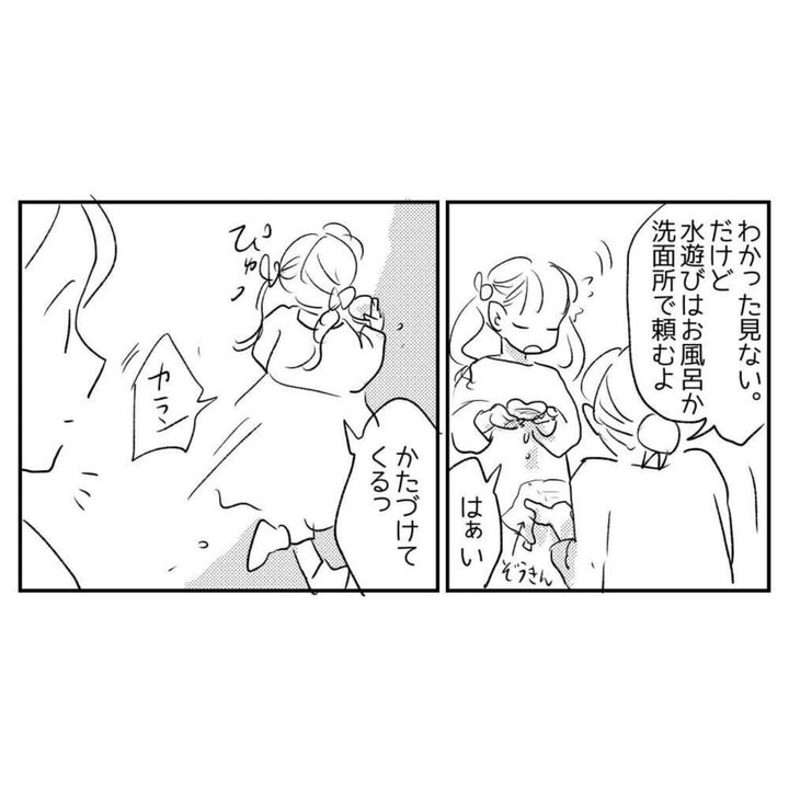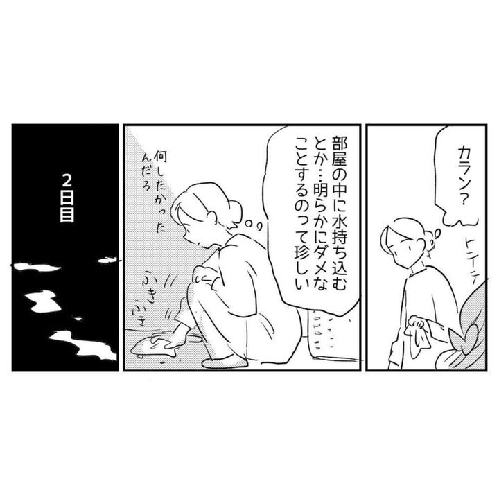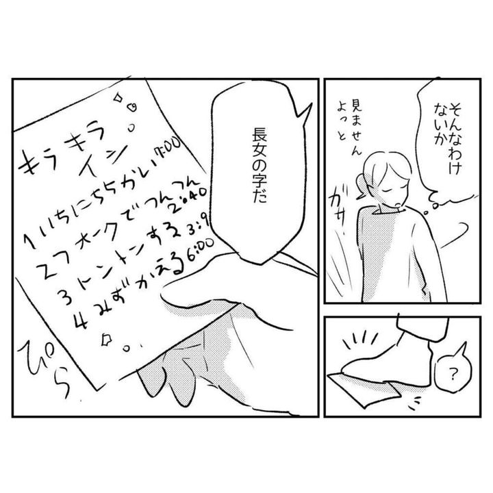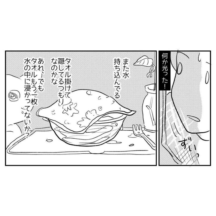 一瞬、内緒で生き物を飼っているのでは…と、思いました。ですが、床に落ちていた紙と水の中にあった石を見つけ、何かに気づきました。長女の目的とは?