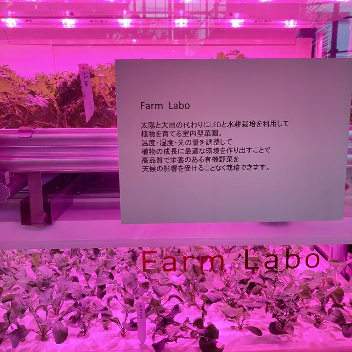 水耕栽培室の写真です。こちらで収穫したサラダを2階のカフェでいただけます♡