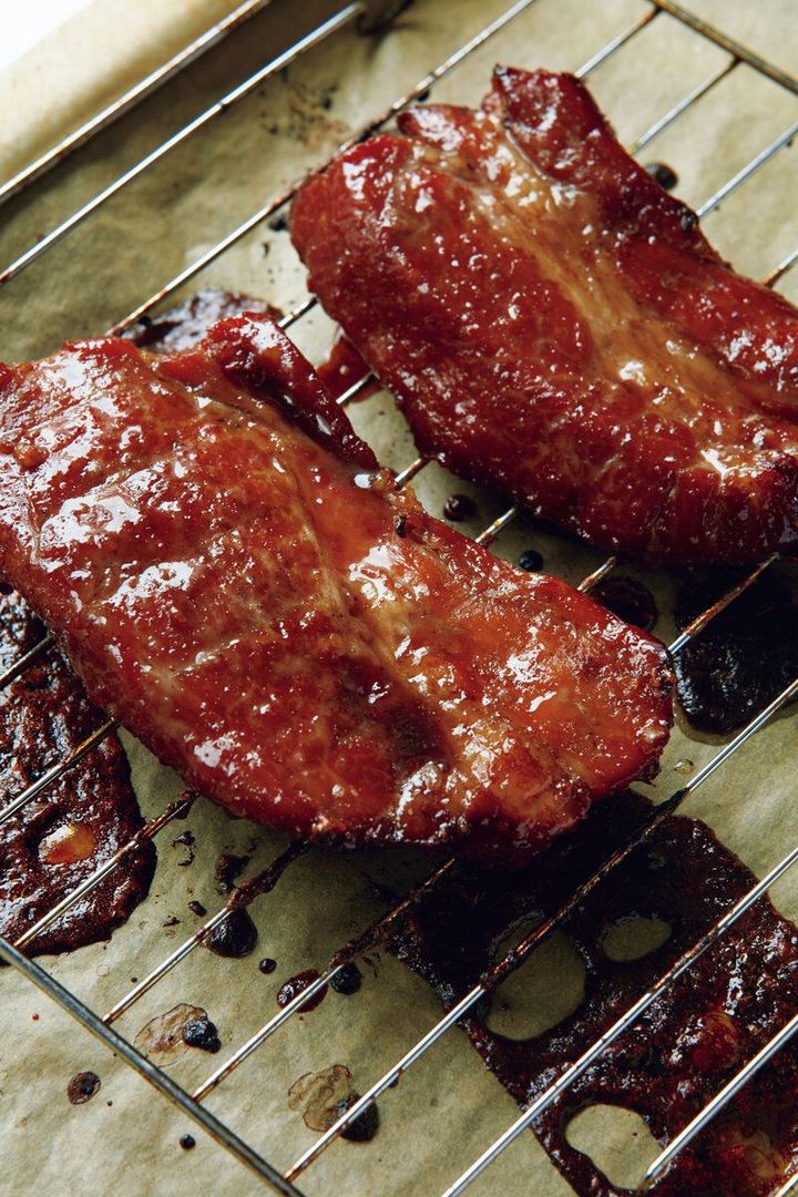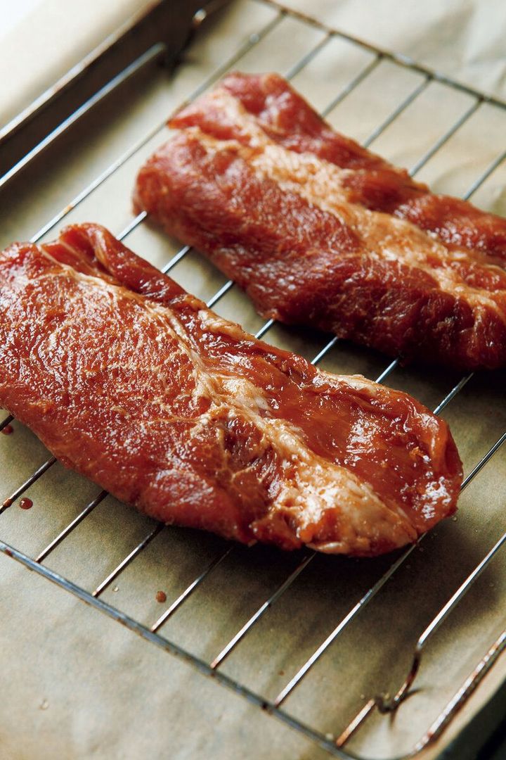 はちみつ水を塗ることでチャーシュウらしい焦げ目がつく。甘みと香ばしさもアップ。