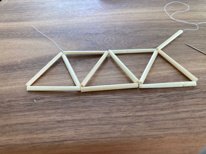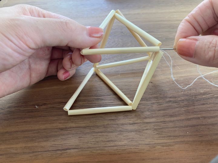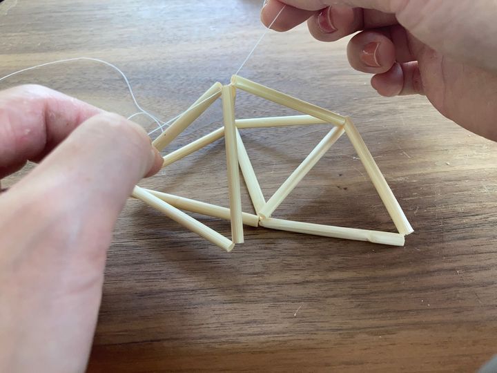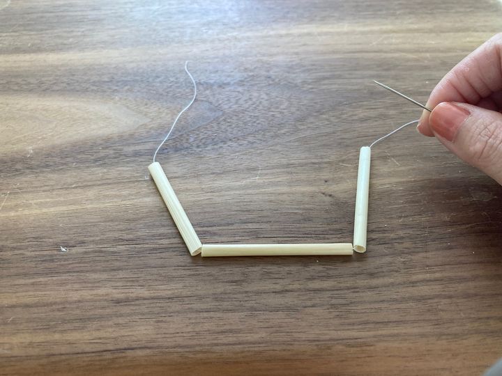 一本描きの要領でストロー12本を糸で繋いでいきます。