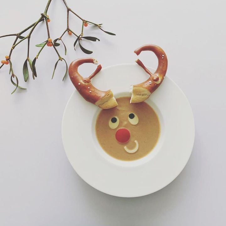 半分に切ったプレッツェルを角にした、トナカイのスープレシピ。さらにジャムサンドをトナカイに見立てたかわいいアレンジも教えていただきました。クリスマスメニューの一皿は、これで決まり!