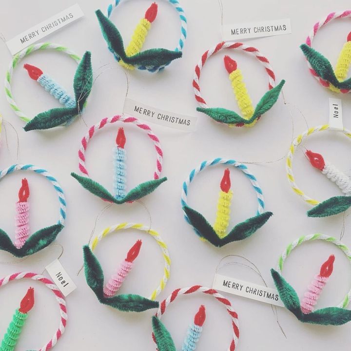 カラフルなモールをキャンドルに見立てたクリスマス飾りの作り方。色を変えると違ったかわいさが生まれるので、家族で一緒に作るのも楽しそうです。お部屋に飾っても、もちろんツリーのオーナメントにしてもとってもかわいい!