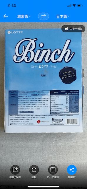 裏にはハングルで説明がびっしり。筆者はハングルが読めないのでアプリで翻訳してみます。