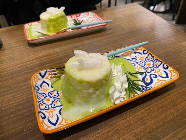 提供されると、グリーンのビジュアルにびっくり…!!タイ・バンコクを一人旅したことがあるのですが、そのときには出会わなかったスイーツです。