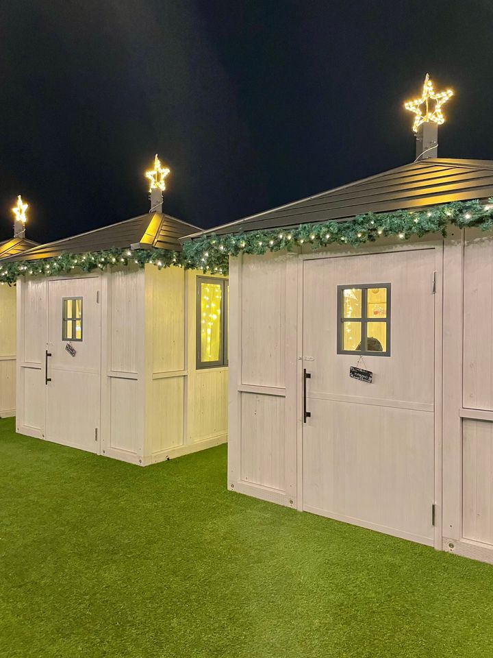 さらには本場のクリスマスマーケットさながらにヒュッテ(木の小屋)が並んでいるのですが、