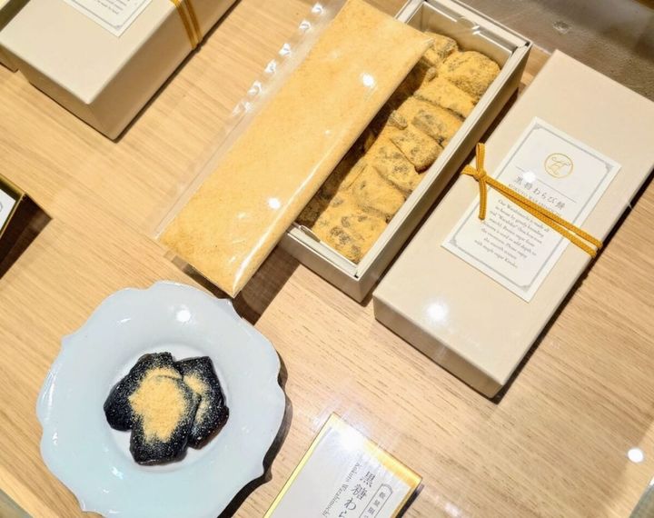 数量限定「黒糖わらび餅」(税込3,240円/消費期限3日)。店内で練り上げるわらび餅に、波照間島産黒糖と洋酒が香る極上の逸品。珍しさもあり、昼頃に完売することも。筆者が訪れたときは、早々に「練乳葛豆腐」が完売していました!