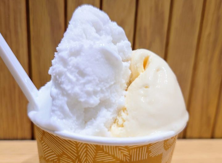 2種盛り(480円~)、3種盛(680円~)の2タイプで、カップのみの提供。「プレミアムフレーバー」は追加料金(テイクアウト54円・イートイン55円)、「季節のフレーバー」は追加料金(テイクアウト108円・イートイン110円)あり。選ぶフレーバーによって価格は変動します。