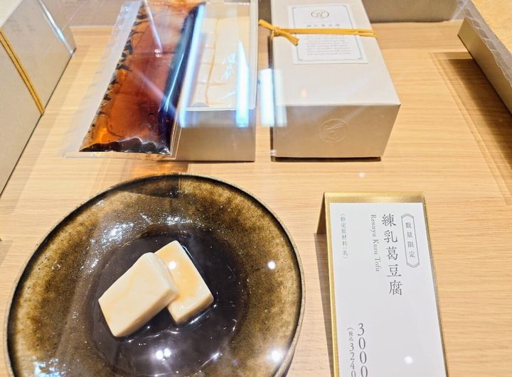 数量限定「練乳葛豆腐」(税込3,240円/消費期限1日)。本葛粉を使いじっくり練り上げた練乳葛餅。徳島県の和三盆の糖蜜をとろりとかける大人なスイーツ。