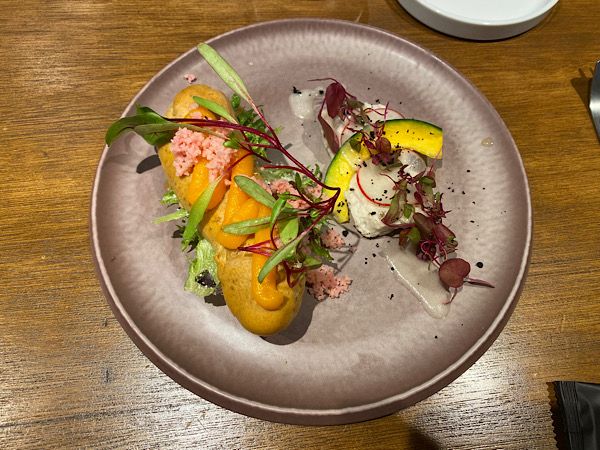 前菜 彩り豊かな前菜で、サーブされたときには思わず声が出ました。 シュー生地仕立てです。味の濃い元気いっぱいのお野菜がたっぷりで、体に栄養が行き渡るようでした。