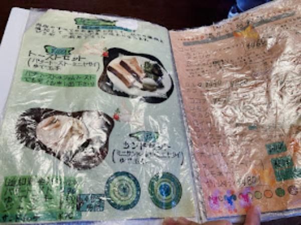 使いこまれたメニューから老舗らしさが感じられて素敵です。モーニングメニューの中から、今回はトーストセットを注文しました。