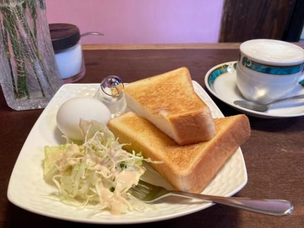 トーストに、ゆで玉子、ミニサラダが付いています!喫茶店らしいシンプルなモーニング。朝のコーヒーに合って、気持ちよい食べ心地です。