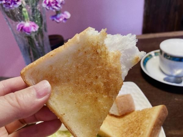そっとちぎってみると、フワッと…。しっとり本当に美味しいトースト!