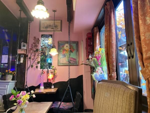 ピンクの壁、レトロ可愛い照明と家具、鮮やかでロマンティックな演出…。広がる異空間に、心の中はワクワク感でいっぱいです!