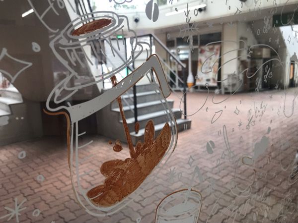 店内のガラス窓には、お洒落なイラストも描かれていました。