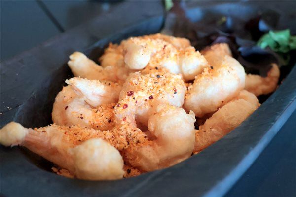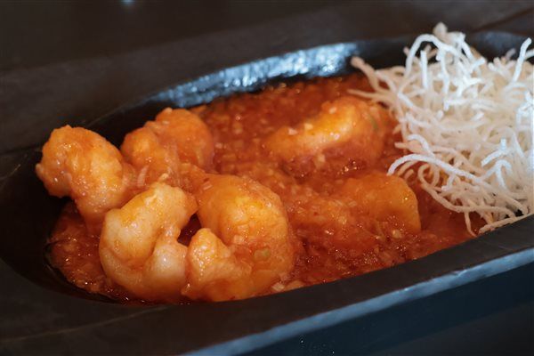 小エビの衣揚げにはココナッツのパウダーを使って作られたソルトがかかっていました。 大海老チリソースのぶりんぶりん具合は言わずもがな!!!ですわ。