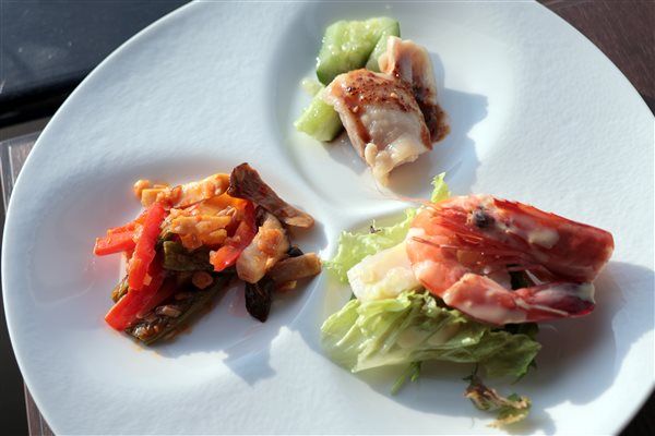 ●干し海老入り 季節の野菜と搾菜の煎り付け ●四川名菜 蒸し鶏のピリ辛黒酢ソース ●サステナブルシーフードのサラダ