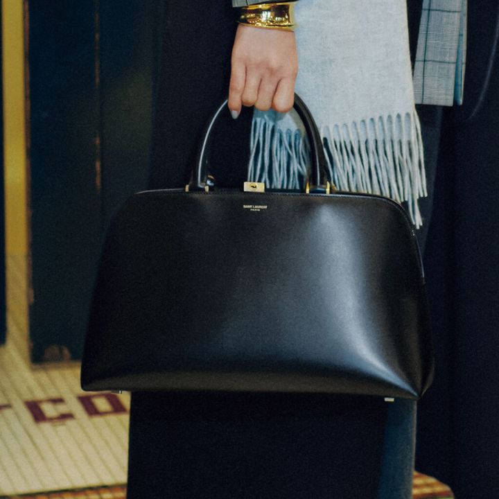 バッグ〈H22.5×W36.5×D12㎝〉¥445,500ローファー¥132,000バングル¥126,500(すべてサンローラン バイアンソニー・ヴァカレロ/サンローラン クライアントサービス)コート¥70,400(アイビー オーク/デミルクス ビームス 新宿)ジャケット¥52,800(ウィム ガゼット/ウィム ガゼット ルミネ新宿店)Tシャツ¥10,450(クチュールドアダム/シップス インフォメーションセンター)デニムパンツ¥25,300(RHC/RHC ロンハーマン)ストール¥27,500(ユナイテッドアローズ/ユナイテッドアローズ 渋谷スクランブルスクエア店)