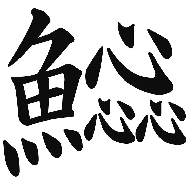 「魚」に3つの心を組みあわせて、ある生き物を表しています。