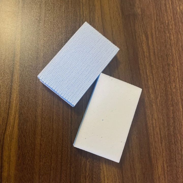 これがなんと、極細ブラシ面とメラミンスポンジ面の二面構造になっていましてね。