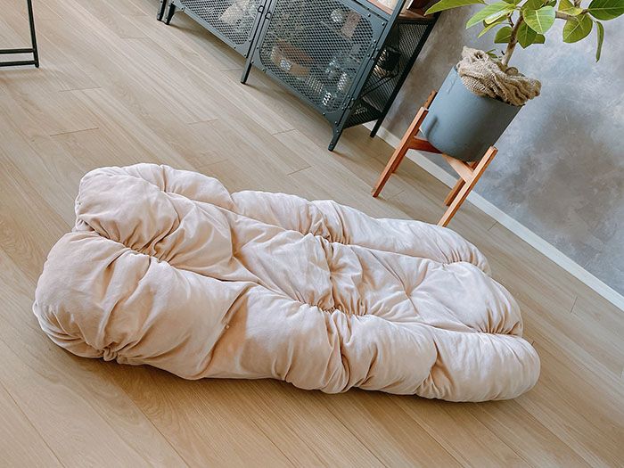 ほかにも広げて使うとブランケットやクッションマットとしてもマルチに使うことができます。
