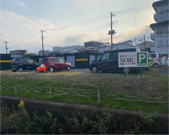 駐車場は店舗前4台と、第二駐車場10台がお店近くに川を渡ったところにあります。