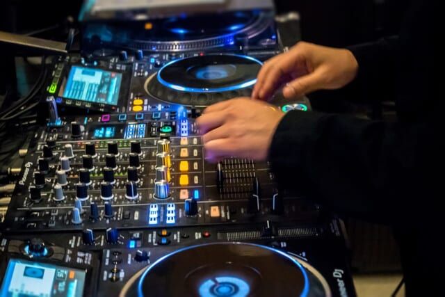 ▲ホテルには珍しく、カウンターにはプロ用の機材をそろえた本格的な DJ ブースを設置