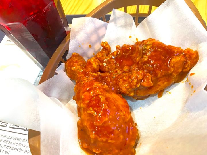 甘辛いタレはヤンニョムチキンそのもので、韓国らしさも堪能できました。結果、コーラをお供に大満足のおやつチキンとなりました。日本と全然違うメニューが楽しめる韓国KFC、試す価値あり! です!