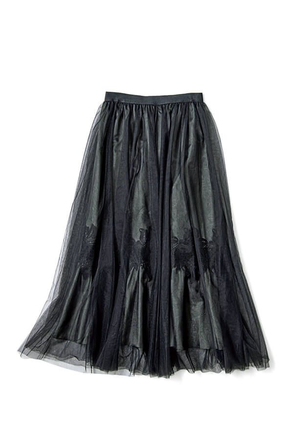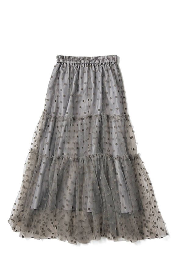 やわらかなチュール素材は、メリハリのないウエーブさんにとって有益♡ ふわふわトップスとも相性抜群で、トレンド感抜群のコーデが楽しめる!