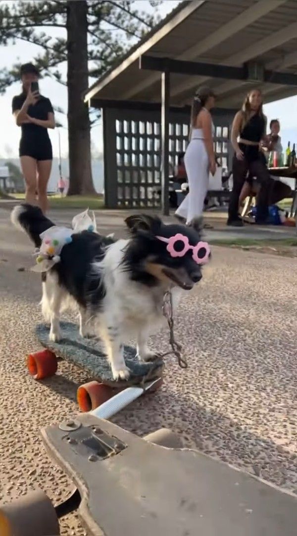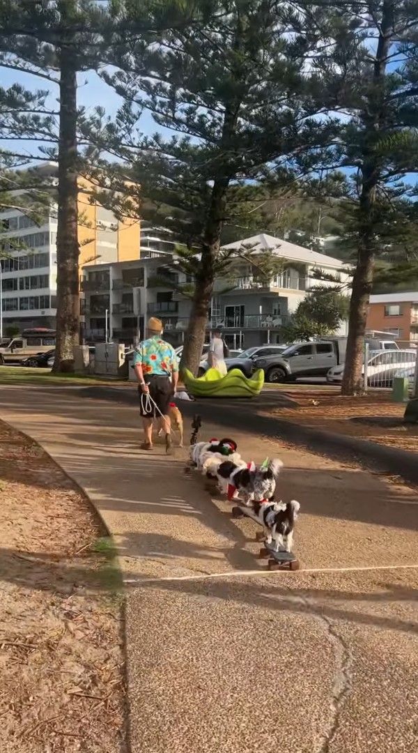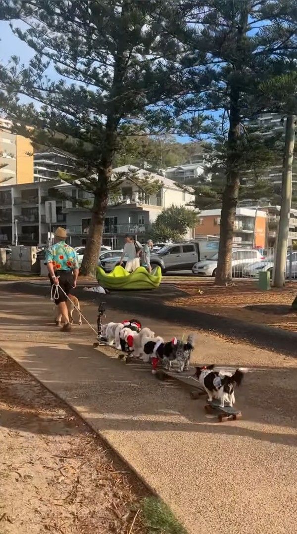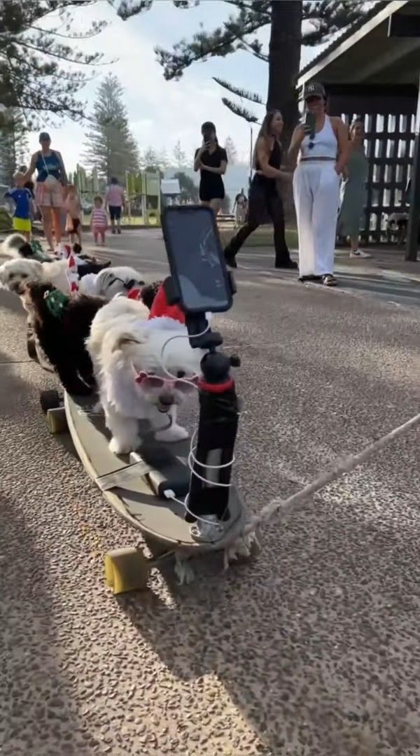 オーストラリアのビーチに現れたスケートボードに乗った犬の行列。 その様子は、シーズンもあってさながら立派なクリスマスパレードとなっていました。