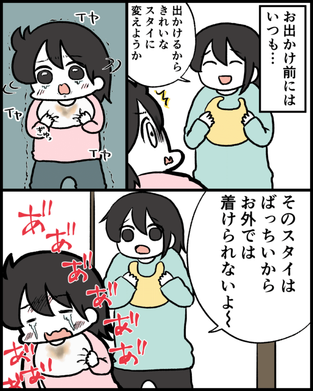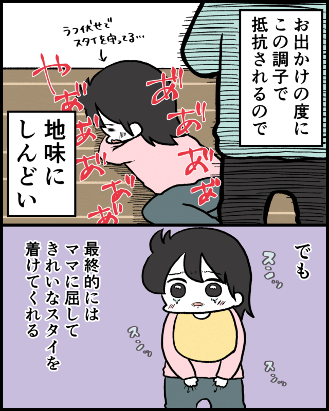 キレイで可愛いのいっぱいあるのにぃ(泣)お出かけ前に繰り広げられる母と娘の譲れない攻防戦|つたんの育児漫画