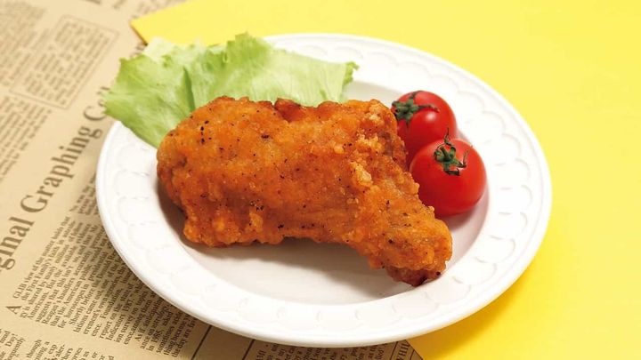 むね肉にスパイシーな香辛料を混ぜ合わせた衣をつけました。しっとり柔らかく仕上げたむね肉は、さっぱりしていて食べやすい仕様です。手で持って食べやすいように手羽元部分を残しました。