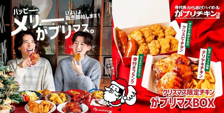 「がブリチキン。」では、おうちで本格クリスマスチキンを味わえる、大人気のクリスマス限定セット「がブリマスBOX」を、2023年12月25日(月)までWEB及び店頭にて予約受け付け中。