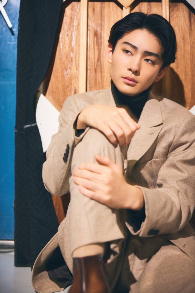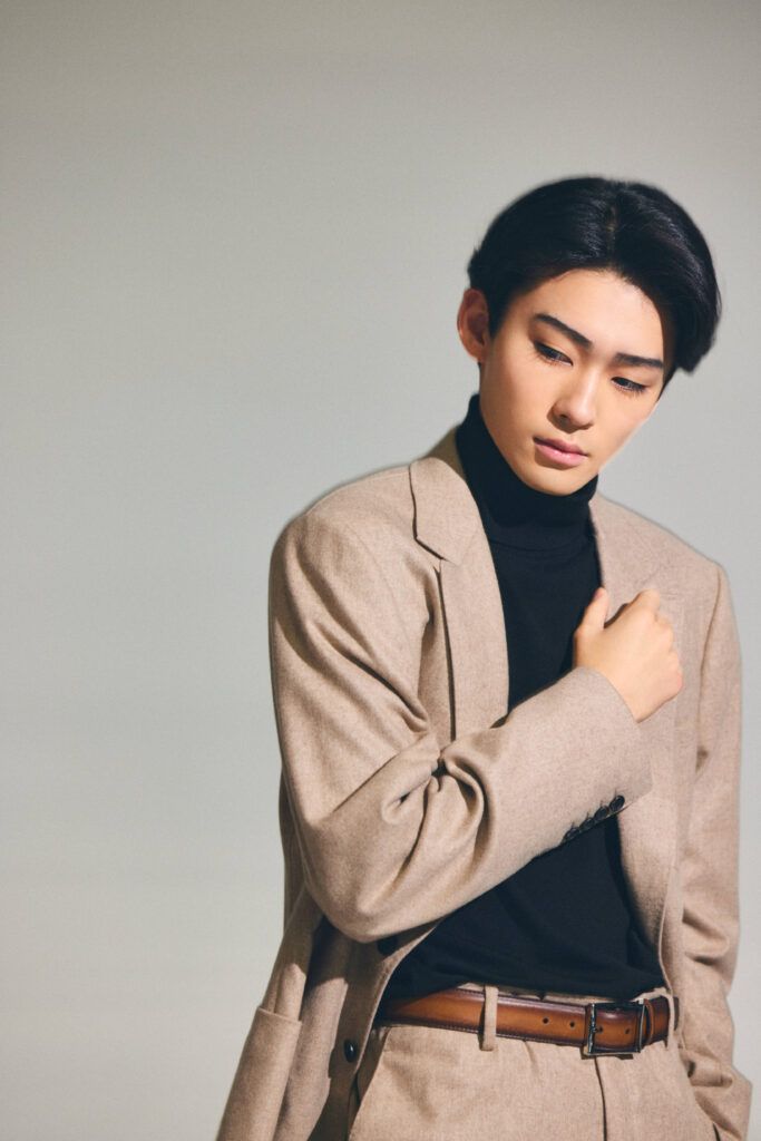 染五郎さん着用衣装/ニット¥147,400ジャケット¥528,000パンツ¥187,000ベルト¥106,150ブーツ¥403,700(すべてベルルッティ/ベルルッティ・インフォメーション・デスク 0120−961−859)その他/スタイリスト私物