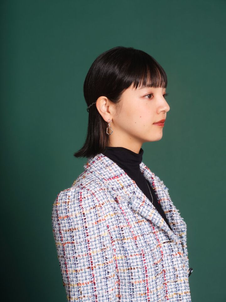 【衣装】ジャケット¥72,600(ソブ/フィルム)ニット¥9,900(アンクレイヴ スタンダード/アンクレイヴ<オンワード樫山>)カチューシャ¥6,820※4本セット(フランスラックス/ピーアンドティートレーディング)ピアス¥22,000(ココシュニック オンキッチュ/ココシュニック)ネックレス¥121,000(ウノアエレ/ウノアエレ ジャパン)右手リング¥1,980(ゴールディ)
