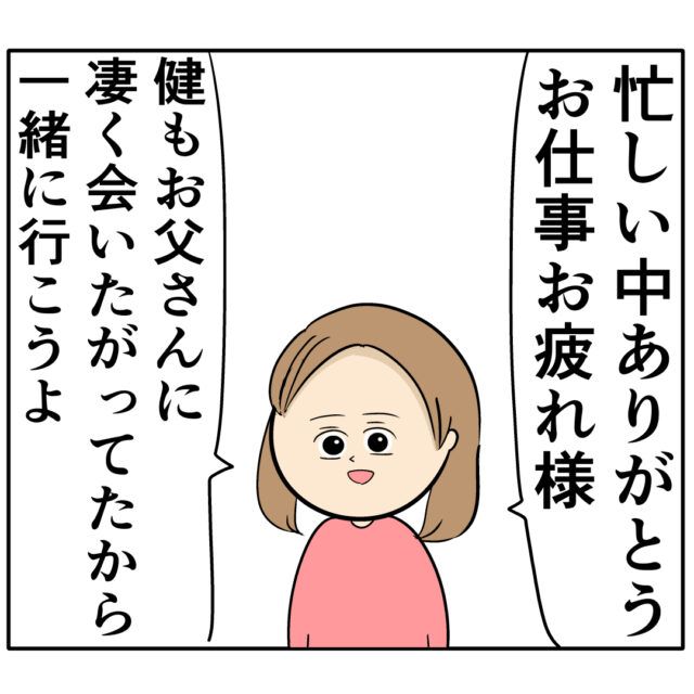 健もお義父さんに凄く会いたがっていたから一緒に行こうよ」